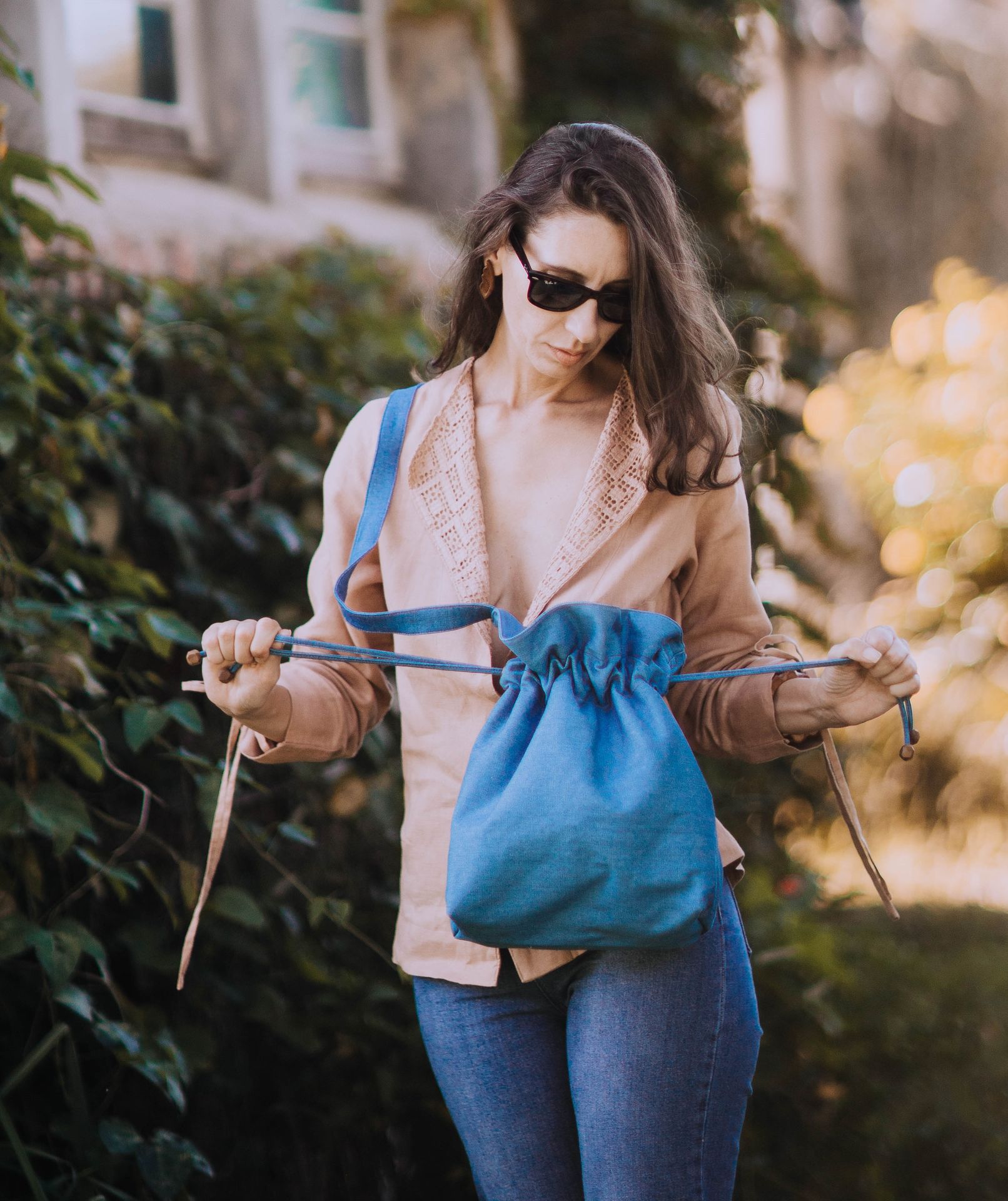 Engana-se quem pensa que a bolsa saco jeans é apenas casual e não pode ser usada com looks mais sofisticados como a alfaiataria. A versatilidade deste modelo agrega leveza e charme a combinações mais elegantes para ocasiões como festas e reuniões, sejam elas pessoais ou profissionais.