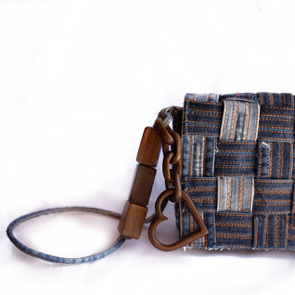 Toda a coleção foi confeccionada com sobras de jeans e madeira. As técnicas manuais de tramas, trançados e cestaria foram utilizadas para a produção das peças.