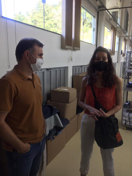 Foi realizada uma visita a fábrica Denim Zero, empresa local doadora das sobras produtivas para a confecção da coleção. Segundo o Sinfiatec (Sindicato das Indústrias da Fiação, Tecelagem, Confecção e do Vestuário do Alto Vale do Itajaí) que representa a categoria na região, Rio do Sul tem aproximadamente 1,7 mil trabalhadores atuando em fábricas da cidade. Somando-se aos municípios próximos, o número de indústrias é de quase 700, das quais 450 atuam com jeans. “A gente faz a coleta através de uma empresa parceira, que separa os resíduos por tipo [malha, jeans, sintético] e eles são encaminhados todos para a reciclagem. Uma parte é reutilizada novamente e outra parte vai para a indústria automotiva. Apenas o mínimo é descartado”, explica a secretária executiva do Sinfiatec, Luciane Pereira. Estas ações de destinação correta do resíduo já acontecem há quatro anos, segundo a secretária, e englobam cerca de 48 empresas, nas 28 cidades do Alto Vale do Itajaí que compõem o Sinfiatec. “As empresas recebem uma declaração de destinação correta, se você analisar toda essa abrangência do Sindicato, imagina quanto de resíduo é gerado. Então isso é uma preocupação muito grande da nossa entidade. a preocupação com o meio ambiente é muito grande, pois temos que pensar no futuro”, salientou.