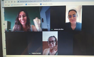 Para a criação foi realizado um encontro presencial de 4 horas para a construção coletiva do painel imagético, definição das peças, desenhos e entrega dos materiais (resíduos) para a confecção dos pilotos.